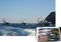 | 事業の概要 | まき網漁業者グループによる新たな加工等の取り組みによるブランド化と販路拡大事業 自ら漁獲した魚の船上での選別の規格化、船上での一夜干し加工、鮮魚を船上で外食産業・量販店等向けの箱詰めを実施し、「萩大島船団丸」としてブランド化を図りながら、乗組員による量販店での試食販売やソーシャルネットワーク等を活用して販売拡大を図ります。 また、魚価下落時には冷凍保管し、まき網漁休漁期間中に干物加工・販売を行い、収益の安定化を図ります。 |
