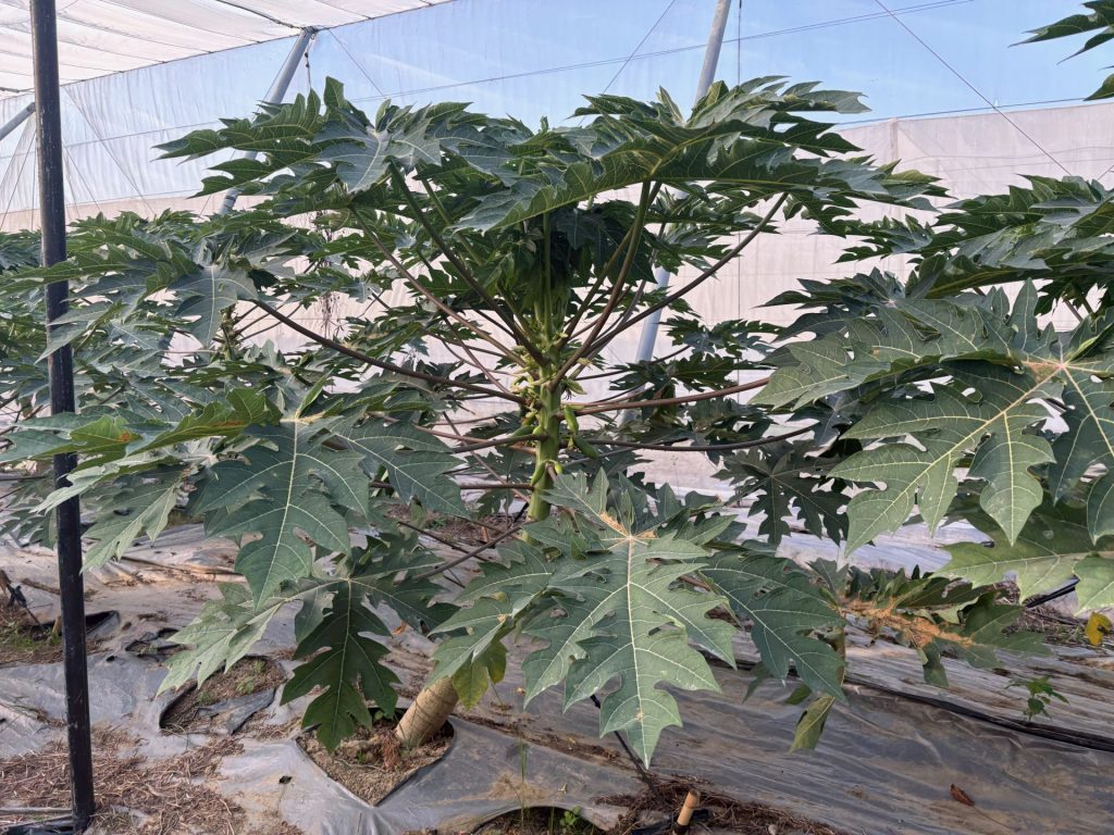1日目は、市場調査として、台北市第二卸売市場、欣欣百貨へ出向き、二次元コードによる農産物の栽培履歴情報の公開等を学びました。その後、嘉義県に移動し、悠沃農場(パパイヤ栽培)を視察し、微気象環境データを活用した栽培管理や、機械化に適した栽培様式による省人化等を視察しました。